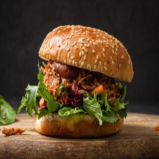 Alface, tomate, batata palha, milho, filé de frango, presunto, muçarela e bacon